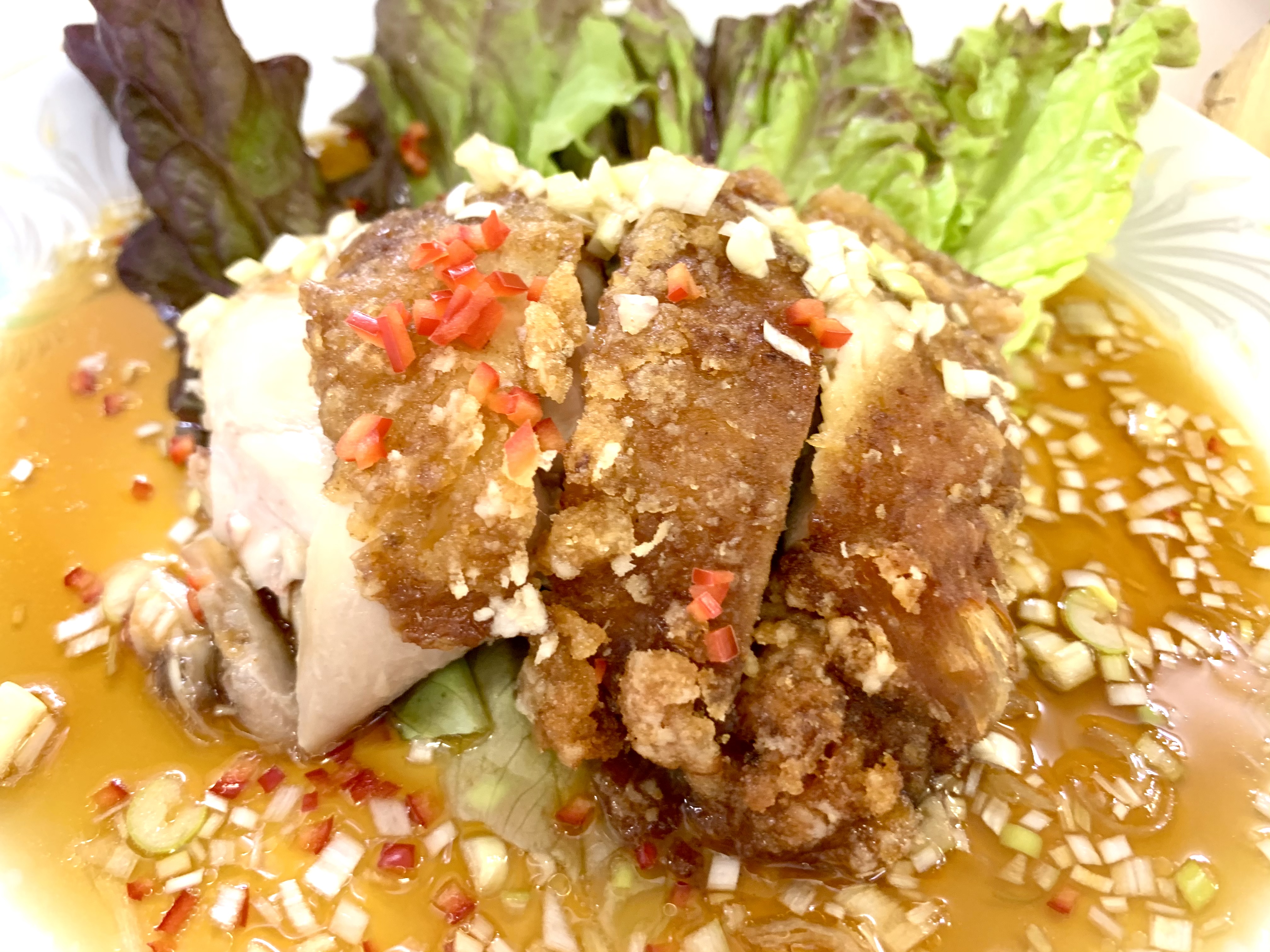 今日は中国料理、鬼頭先生が来てくれました。メニューは油淋鶏、卵スープ、いちごあめでした。新型コロナウイルス感染予防対策で、体験できる部分をかなり短縮し、実習室も分散で行いました。