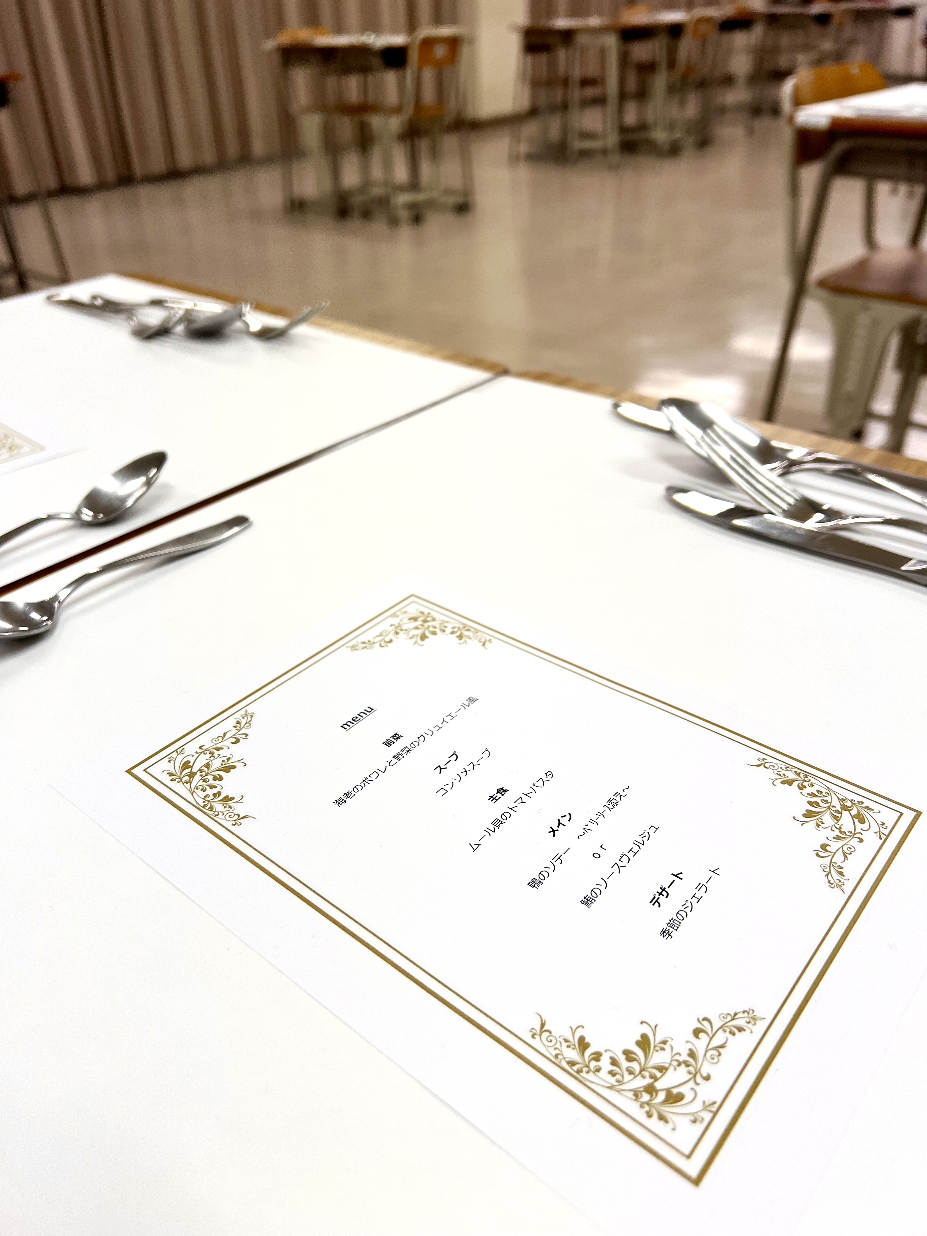 2年生が2つのグループに分かれ、自分たちで持ち寄ったレシピを何度も何度も試作してきた料理を、保護者の皆様に食べていただくというイベントです。