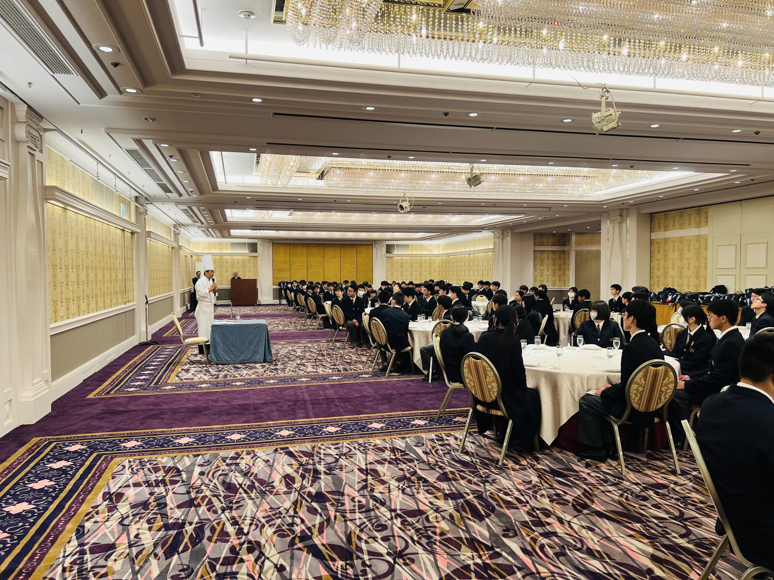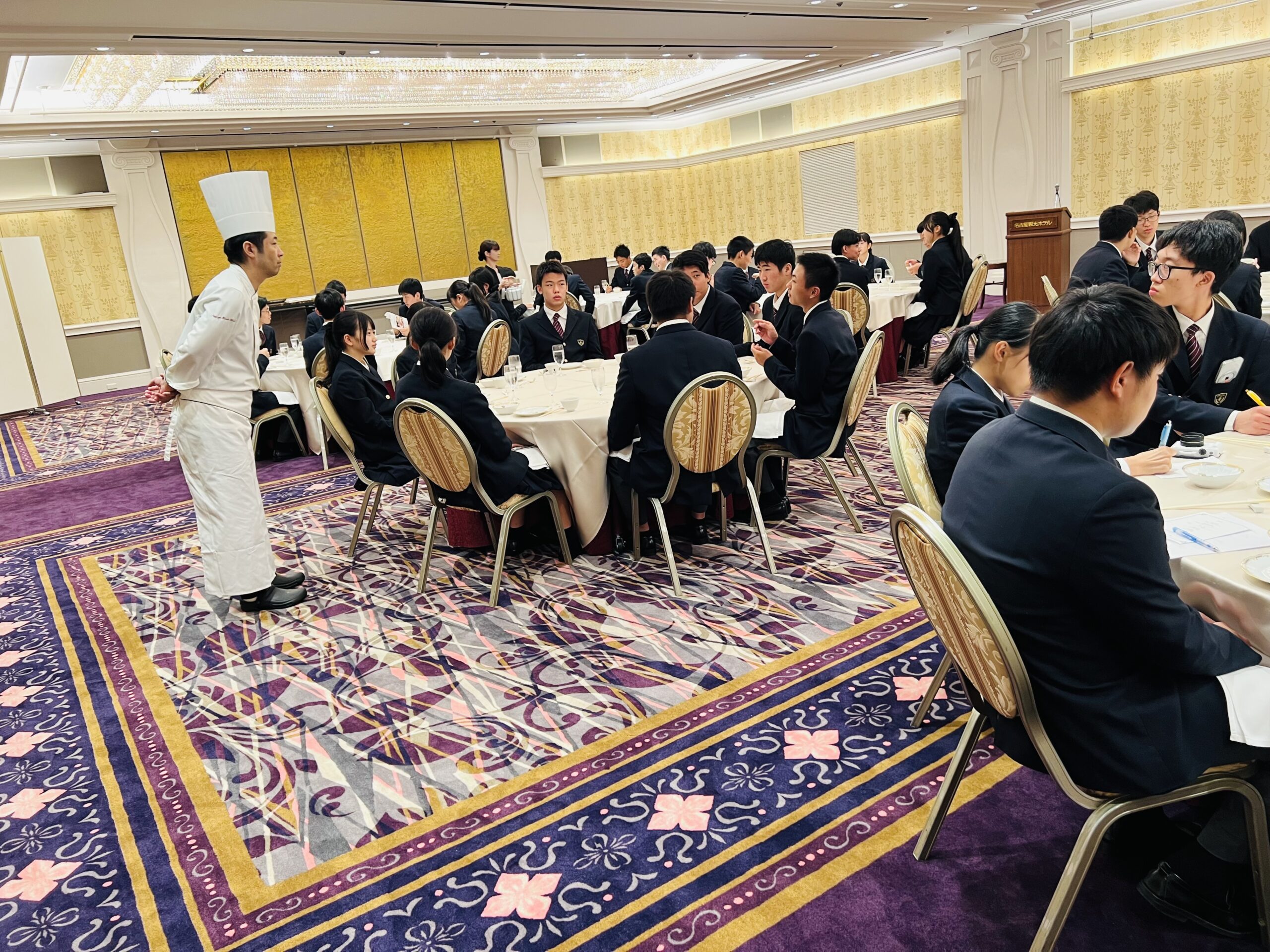 歴史と重厚さを感じる素晴らしいホテルで、高校生の我々がテーブルマナー研修を開催できるのも、本校講師の 鈴木雅彦 様のおかげです。当日も最初にご挨拶に来てくださりました、ありがとうございました。