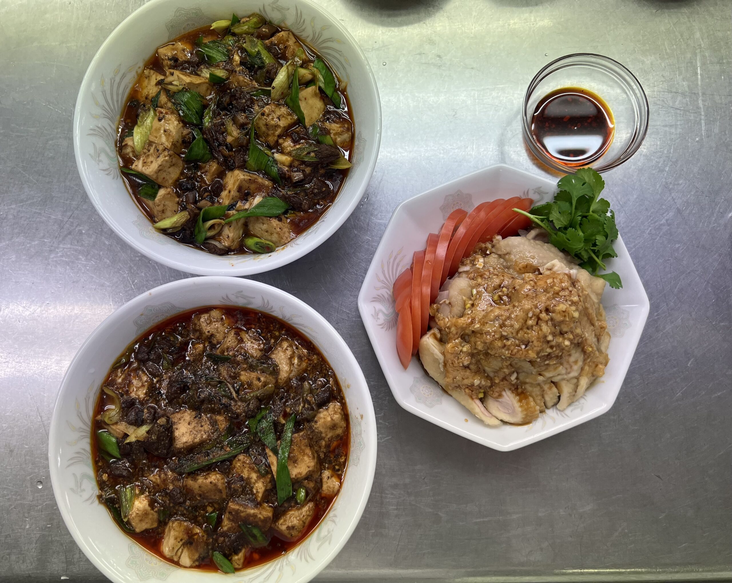 1年生は、『名古屋コーチンの棒棒鶏』『四川風麻婆豆腐』『広東風麻婆豆腐』の3品を作りました。