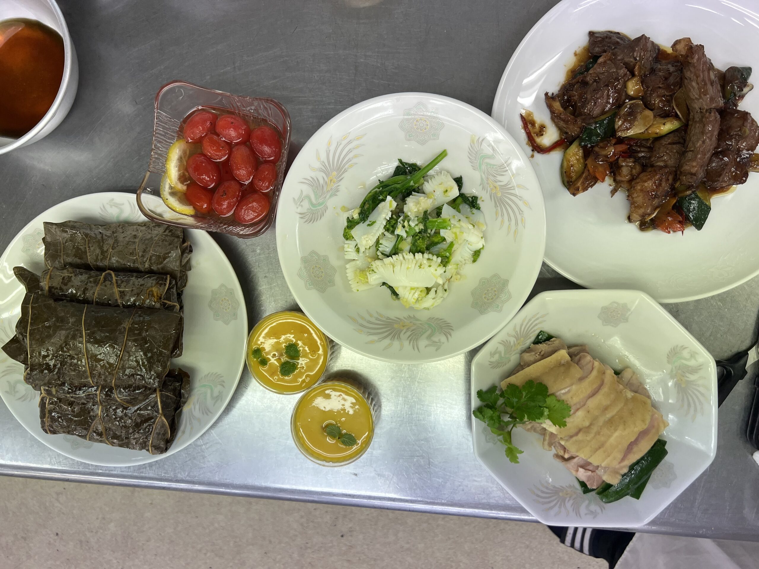2年生は、クラスを<前菜グループ><主菜グループ><点心グループ>の3つに分けて、数品ずつ人数分の調理を行いました。