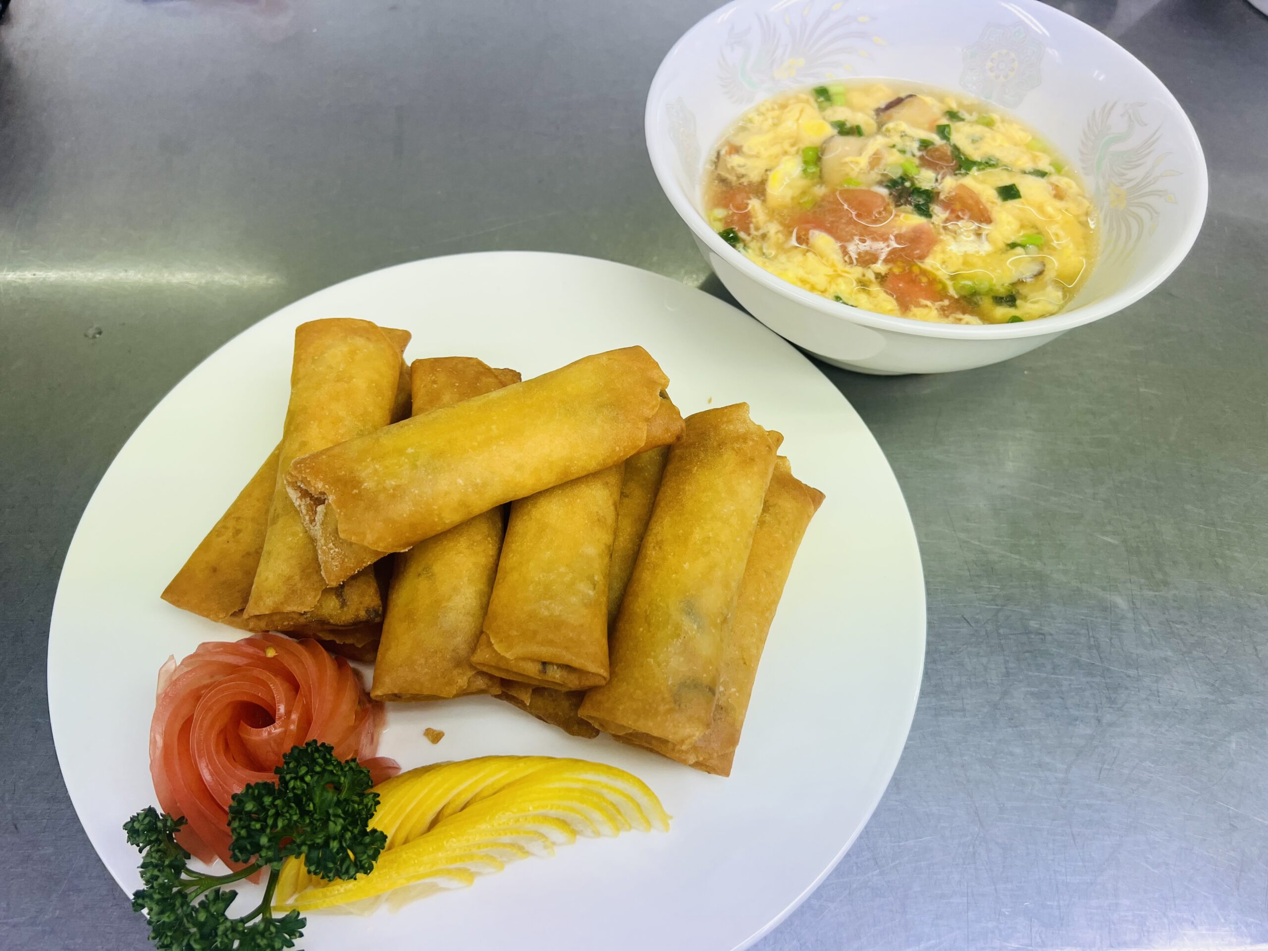 4月15日、中国料理「香港式春巻、番茄蛋花湯」