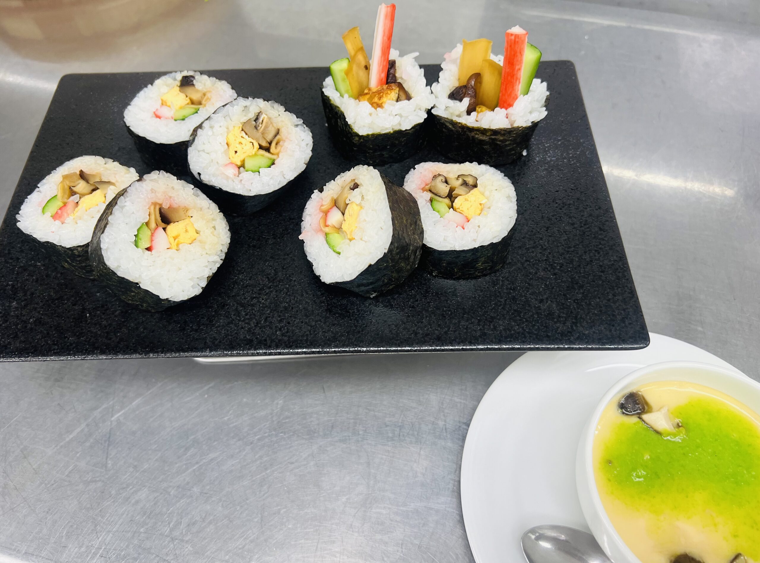 4月23日、日本料理「太巻き寿司、翡翠茶碗蒸し」