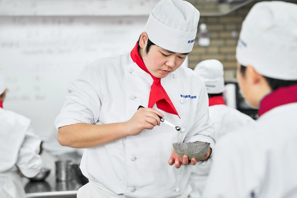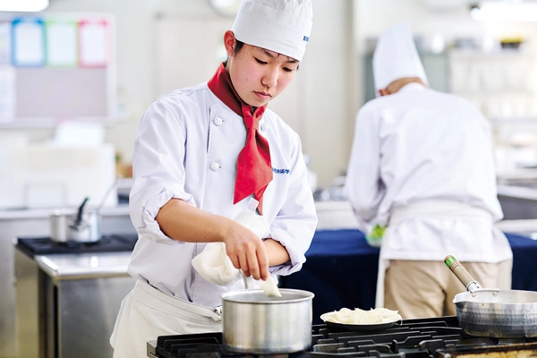 調理師免許、高校卒業資格の2つの資格を取得するために、本校は料理の専門知識と技術はもちろん高等学校の一般教育を行うシステムを採用しています。